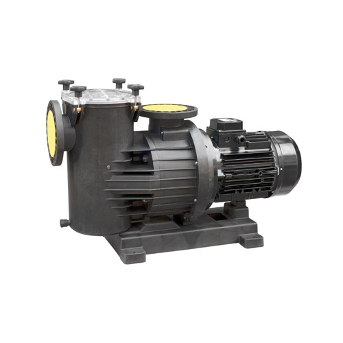 Bombas de piscina de gran caudal, con motores trifásicos eficiencia IE3, ideal para grandes equipos de filtración y para la práctica de la natación contra corriente, parques acuáticos, fuentes, cascadas, etc. (modelos SWK). Cuerpo prefiltro y de bomba, voluta, contravoluta y tapa cuerpo bombaen polipropileno reforzado con fibra de vidrio y resistente a las sustancias químicas de las piscinas. Turbina en Noryl (en bronce marino bajo demanda), modelos 1250 y 1500 en bronce de serie. Eje motor en AISI- 316. Cierre mecánico en Carbón/Cerámica/AISI 316 (apto para el trabajo con agua de mar). Tapa de prefiltro en policarbonato transparente con sistema de cierre mediante pomos. Cesto prefiltro en polietileno y tornillería en AISI- 304. Conexiones por bridas DN-110.