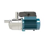 Bomba multicelular horizontal monobloc. Cuerpo bomba de hierro en una sola pieza, abierto por un solo lado (barrel casing), con boca de aspiración frontal sobre el eje de la bomba y boca de impulsión radial en la parte superior. Elementos en Noryl. Temperatura líquido: de 0°C. a +35°C. Temperatura ambiente hasta +40°C. Presión máxima admitida en el cuerpo de la bomba: 8 bar. Servicio continuo.