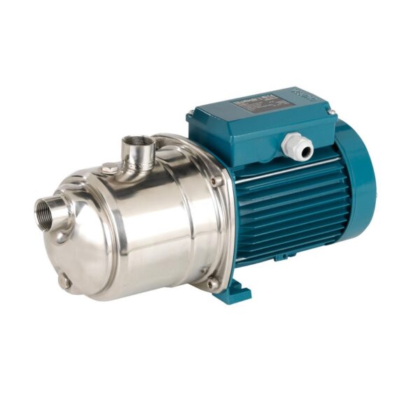 Bomba multicelular horizontal monobloc, fabricada en acero inoxidable, con elementos en noryl. Construccion compacta y robusta, sin brida sobresaliente y acoplamiento bomba-motor unico, con pie soporte. Cuerpo bomba en una sola pieza, abierto por un solo lado, con boca de aspiracion frontal y boca de impulsion radial. Tapones de cebado y vaciado, accesibles desde cada lado. Para liquidos limpios, sin materias sólidas, filamentosas o abrasivas. Adecuadas para presurización de agua en instalaciones domésticas, riego y jardinería.