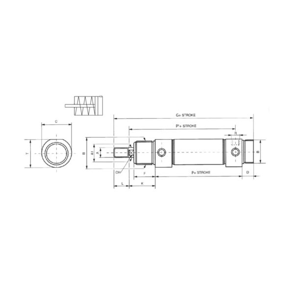 Cilindros neumáticos Aignep de simple efecto magnético. Fabricados en Italia, preparado para detectores magnéticos, vástago en acero cromado. Cilindros ATEX de serie.