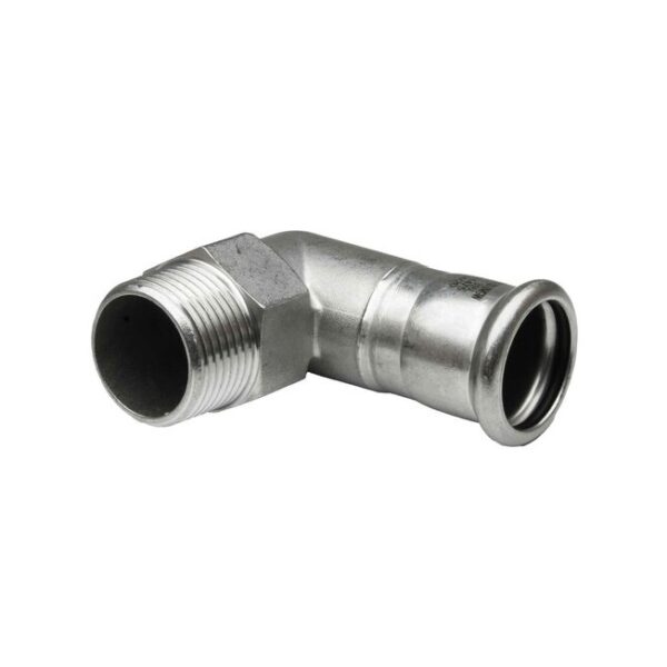 Codo 90º rosca macho prensar hembra acero inoxidable A-316L 1-1/2″ D-42 mm.