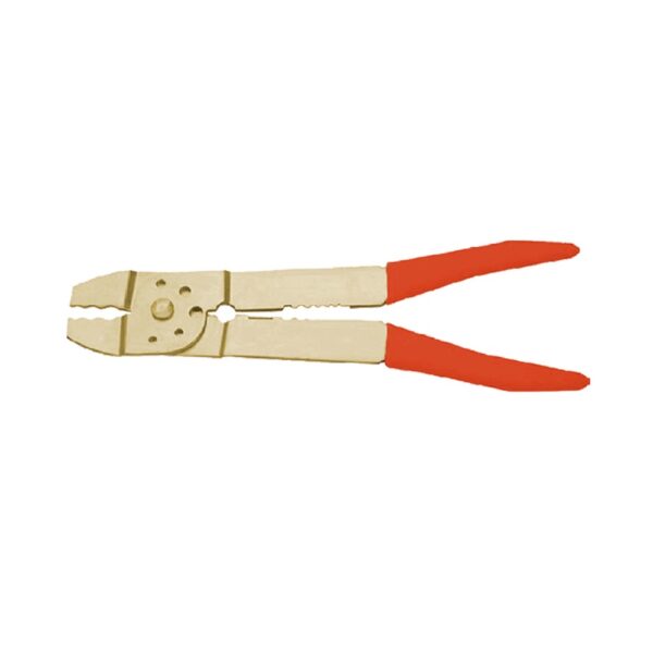 Tenaza crimpadora para terminales aislados antichispa, concebida para su uso en entornos potencialmente explosivos, al estar fabricada en aleación de cobre-berilio.