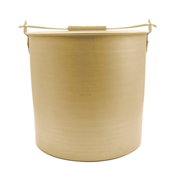 Cubo redondo antichispa, concebido para su uso en entornos potencialmente explosivos, al estar fabricado en latón.
