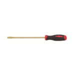 Destornillador de boca plana antichispa, concebido para su uso en entornos potencialmente explosivos, al estar fabricado en aleación de cobre-berilio.