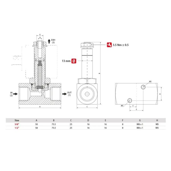 Electrovalvula accionamiento directo Aignep 3/2 N.C. 3/8″ laton EPDM 4 mm. 02F04304E0