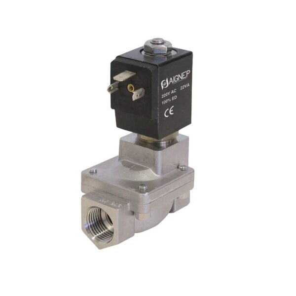 Electrovalvula accionamiento indirecto Aignep 2/2 N.C. 1/2″ inoxidable FKM RSP-15J