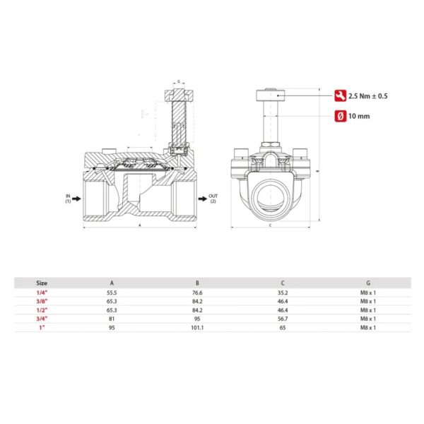 Electrovalvula accionamiento indirecto Aignep 2/2 N.O. 1/2″ laton FKM 14 mm. 04F05214V0