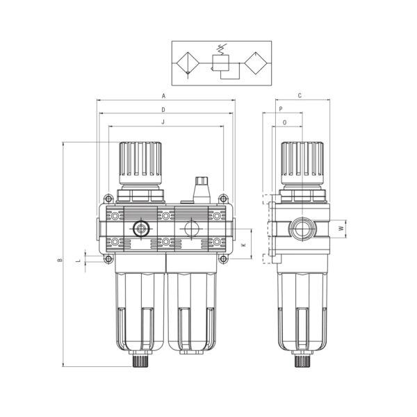 Filtro regulador lubricador Aignep FR+L2 20 micras 0-8 bar purga automatica con rosca 3/8″ T100204232100