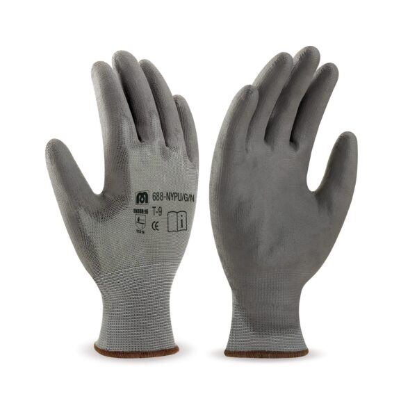 Guante de poliester con recubrimiento de poliuretano color gris 688NYPUGNG talla 8