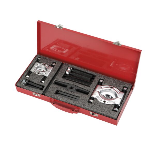 Juego de dos separadores de rodamientos (30 x 50 mm y 50 x 75 mm) y dispositivo extractor, indicado para extraer engranajes, cojinetes o poleas de forma efectiva.