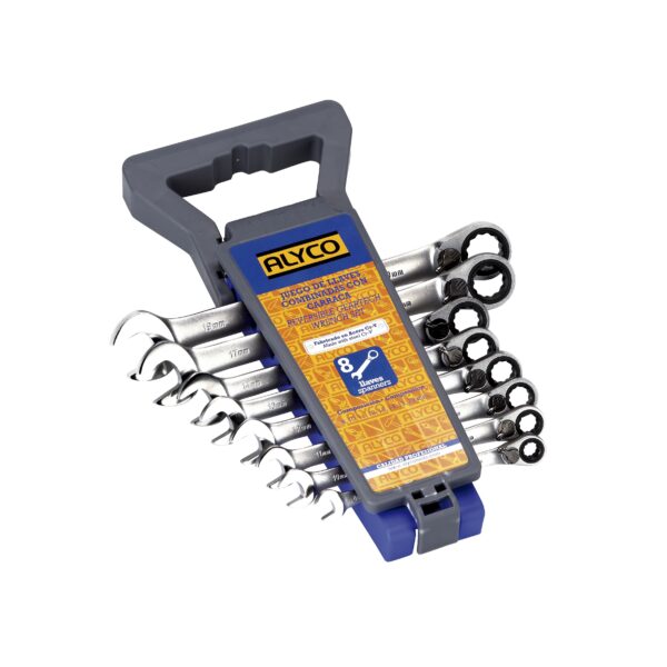 Juego llaves combinadas carraca 8 piezas en soporte 8-19 mm. Alyco codigo 191876