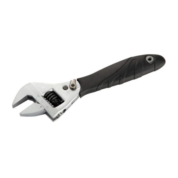Llave ajustable de moleta central fabricada en acero al Cromo Vanadio, máxima calidad y resistencia al desgaste. Gran par de apriete, permitiendo aprietes de gran esfuerzo sin dañar la llave.