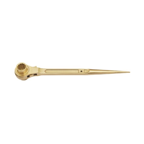Llave de carraca para andamios antichispa, concebida para su uso en entornos potencialmente explosivos, al estar fabricada en aleación de aluminio-bronce.
