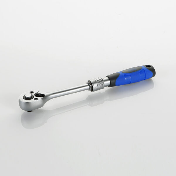 Llave de carraca para aprietes con llaves de vaso de 1/4″. Mango ergonómico extensible que permite grandes pares de apriete.