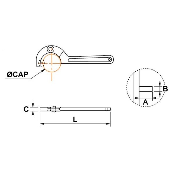 Llave de gancho con pin articulada Ega Master 15-35 mm. codigo 58120