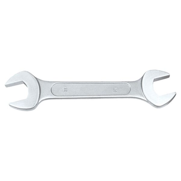 Llave fija de dos bocas fabricada en acero inoxidable, dura y altamente resistente a la corrosión, para trabajar en las condiciones ambientales más hostiles.