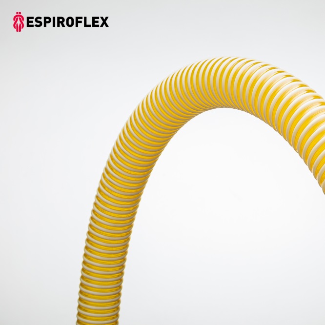 Manguera de poliuretano con espiral de PVC para bombeo por aspiración e impulsión de líquidos con alto contenido abrasivo (ferralla, barro, ar.ena, etc.). De uso alimentario según reglamentos europeos CE 1935/2004 y UE 10/2011 (consultar declaración de conformidad). La pared del tubo es lisa en su interior y corrugada en el exterior. Buena resistencia química, asociada a la tabla de resistencias del PU y con muy buena resistencia a la hidrólisis. La temperatura recomendada de empleo es entre 20°C. y 80°C