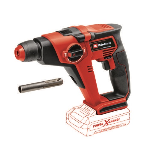 El martillo perforador con batería Einhell TE-HD 18/12 Li – Solo de Einhell es un potente miembro de la flexible familia Power X-Change. Cada batería PXC se puede combinar con cualquier equipo de la serie del sistema. Con sus dos funciones básicas, el martillo perforador con batería es un potente ayudante para principiantes y operarios consumados para la perforación y perforación con percusión para un trabajo adaptado al material y un mecanismo neumático de percusión para una perforación potente en materiales rebeldes como el hormigón. El potente motor y un engranaje metálico robusto convierten un alto par de fuerzas. Con cualquier potencia del martillo perforador, la unidad electrónica de velocidad de giro da lugar a un trabajo adaptado al material y a la aplicación. El portaherramientas SDS-Plus universal está equipado con una unidad semiautomática. La concepción económica de la empuñadura con agarre suave ofrece una sujeción fija y segura también en el caso de resistencia. El martillo perforador con batería está equipado adicionalmente con una luz LED para la iluminación óptima de la zona de trabajo. En el alcance está incluido un adaptador de brocas magnético para el atornillado El envío se realiza sin batería ni cargador, estos son adquiribles por separado, por ejemplo, como un práctico set para principiantes Power X-Change.