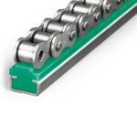 Perfil guia PE-1000 verde para barandilla tipo «Z» standard n n nHOJA TECNICA n nPerfiles para guía de cadenas de rodillos en Polietileno PE-1000 con o sin perfil metálico, en diferentes ejecuciones. Los perfiles guía para cadena protegen sus cadenas y garantizan propiedades de rodadura óptimas y una gran resistencia al desgaste. El polietileno PE-1000 ofrece condiciones óptimas para su aplicación como guía para cadenas de rodillos y cadenas de eslabones redondos.