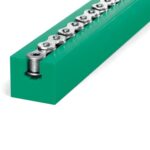 Perfil guia PE-1000 verde para cadena de rodillos doble 16B-2 tipo MD-5 paso 1″ n n nHOJA TECNICA n nPerfiles para guía de cadenas de rodillos en Polietileno PE-1000 con o sin perfil metálico, en diferentes ejecuciones. Los perfiles guía para cadena protegen sus cadenas y garantizan propiedades de rodadura óptimas y una gran resistencia al desgaste. El polietileno PE-1000 ofrece condiciones óptimas para su aplicación como guía para cadenas de rodillos y cadenas de eslabones redondos.