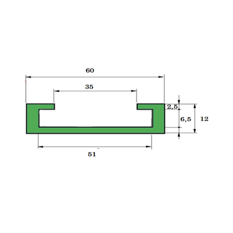 Perfil guia PE-1000 verde para pletina tipo “C” 6×50