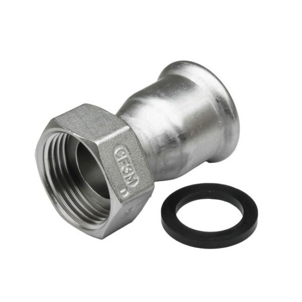 Racor de 2 piezas con conexión prensar hembra y tuerca loca con rosca hembra para tubería de acero inoxidable, fabricada en acero inoxidable A-316L según la normativa EN-14404, con juntas tóricas en EPDM/FKM y con rosca de acuerdo a DIN-2999. La curva soporta una presión máxima de 16 bar a 90°C. y de 6 bar a 180°C. Soporta un rango de temperatura de -20 a 110°C. con junta en EPDM y de -20 a 180°C con junta KFM. Cumple con los requisitos según UNE-EN-10088, así como DVGW GW534-2004 y DVGW GW541:2004-10. Está indicada para su uso en agua sanitaria, calefacción, contra incendios y aire comprimido (libre de aceite) si dispone de junta tórica en EPDM y para aceites, hidrocarburos (excepto gasoil), instalaciones solares y aire comprimido, si dispone de junta en FKM. Los accesorios inoxidables para prensar son aptos para tubos que cumplen con las especificaciones DVGW GW 541 y UNE-EN-10088. Los productos Corix son piezas de acero inoxidable de gran calidad, específicamente pensados para el ámbito industrial. Toda la gama está fabricada bajo estrictos parámetros de calidad cumpliendo con las más altas certificaciones en conducción de fluidos.