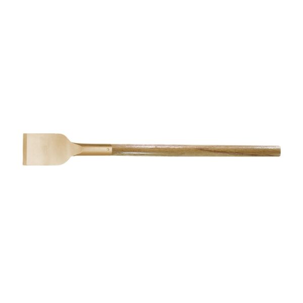 Rasqueta de hoja larga antichispa, concebida para su uso en entornos potencialmente explosivos, al estar fabricada en aleación de cobre-berilio.
