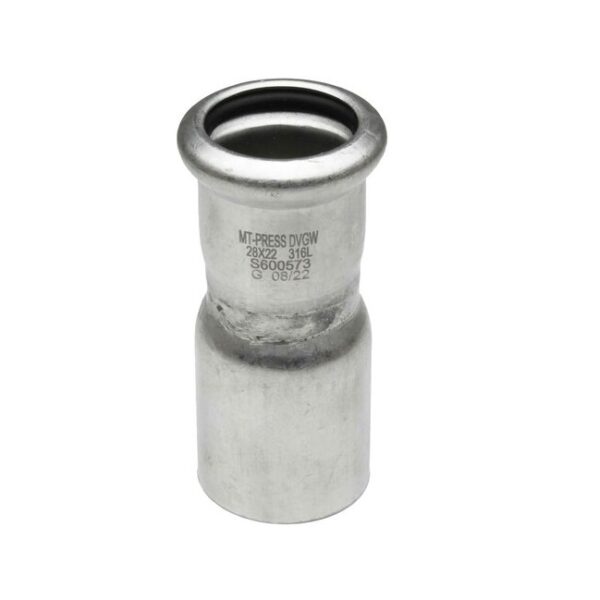 Reducción con conexión prensar macho-hembra para tubería de acero inoxidable, fabricada en acero inoxidable A-316L según la normativa EN-14404, con juntas tóricas en EPDM/FKM y con rosca de acuerdo a DIN-2999. La curva soporta una presión máxima de 16 bar a 90°C. y de 6 bar a 180°C. Soporta un rango de temperatura de -20 a 110°C. con junta en EPDM y de -20 a 180°C con junta KFM. Cumple con los requisitos según UNE-EN-10088, así como DVGW GW534-2004 y DVGW GW541:2004-10. Está indicada para su uso en agua sanitaria, calefacción, contra incendios y aire comprimido (libre de aceite) si dispone de junta tórica en EPDM y para aceites, hidrocarburos (excepto gasoil), instalaciones solares y aire comprimido, si dispone de junta en FKM. Los accesorios inoxidables para prensar son aptos para tubos que cumplen con las especificaciones DVGW GW 541 y UNE-EN-10088. Los productos Corix son piezas de acero inoxidable de gran calidad, específicamente pensados para el ámbito industrial. Toda la gama está fabricada bajo estrictos parámetros de calidad cumpliendo con las más altas certificaciones en conducción de fluidos.