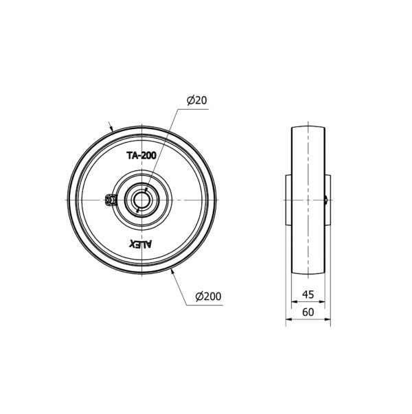 Rueda acero aro suelto Alex diametro 200 mm. modelo 4-0563