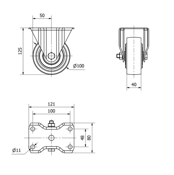 Rueda acero fija Alex diametro 100 mm. modelo 4-0119 EAN 8422202401195