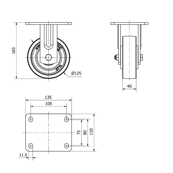 Rueda acero fija Alex diametro 125 mm. 4-0798