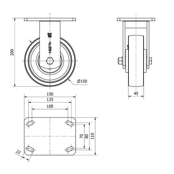 Rueda acero fija Alex diametro 150 mm. 2-3686