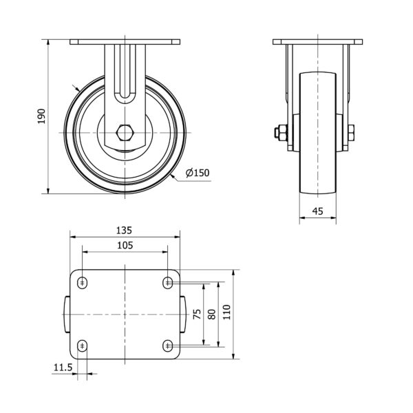 Rueda acero fija Alex diametro 150 mm. 4-0857