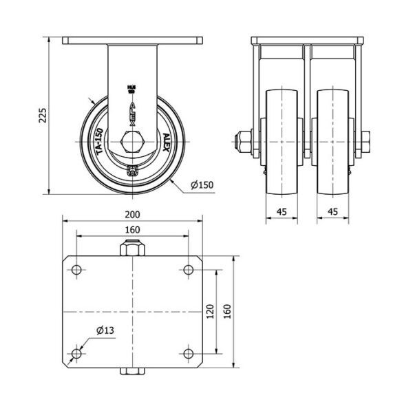 Rueda acero fija Alex diametro 150 mm. modelo 2-1889 EAN 8422202218892