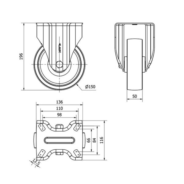 Rueda acero fija Alex diametro 150 mm. modelo 2-2517 EAN 8422202225173
