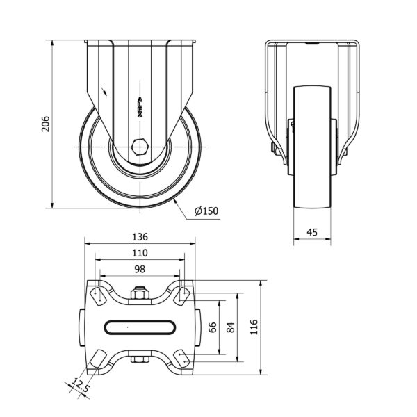 Rueda acero fija Alex diametro 150 mm. modelo 2-2895 EAN 8422202228952