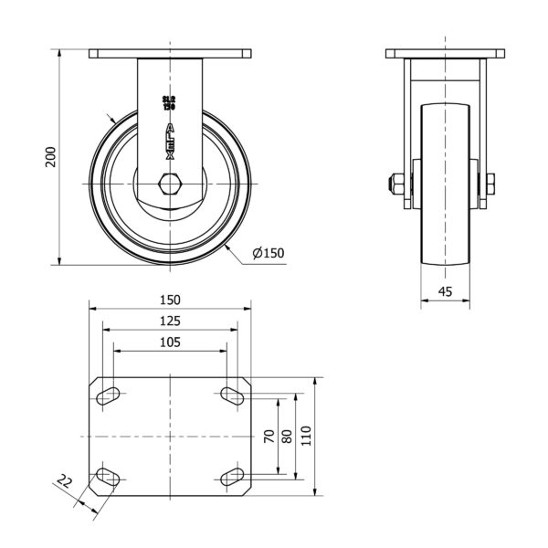 Rueda acero fija Alex diametro 150 mm. modelo 2-3685