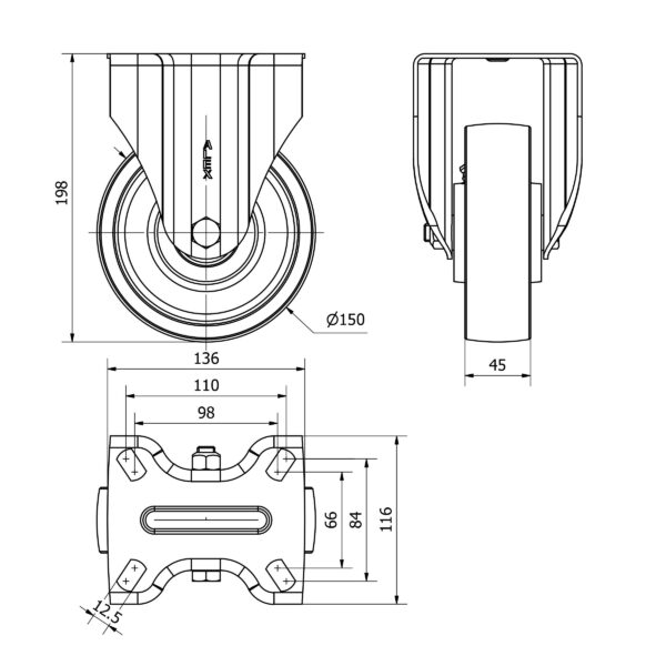 Rueda acero fija Alex diametro 150 mm. modelo 2-3898 EAN 8422202238982