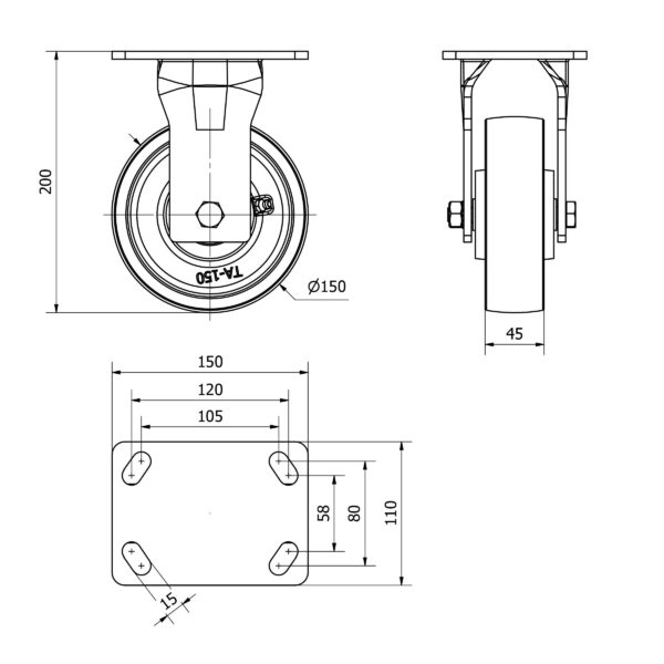 Rueda acero fija Alex diametro 150 mm. modelo 4-0379
