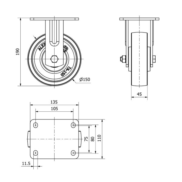 Rueda acero fija Alex diametro 150 mm. modelo 4-0805