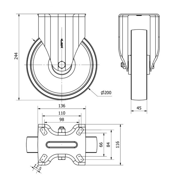 Rueda acero fija Alex diametro 200 mm. 2-3894