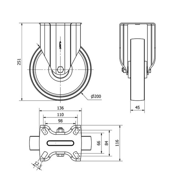 Rueda acero fija Alex diametro 200 mm. modelo 2-0222