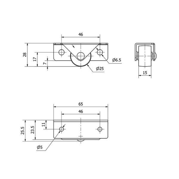 Rueda acero fija Alex diametro 25 mm. modelo 1-0776