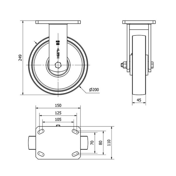 Rueda acero fija Alex diametro 250 mm. modelo 2-0531 EAN 8422202205311
