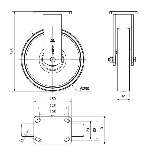 Rueda acero fija Alex diametro 250 mm. modelo 2-2304