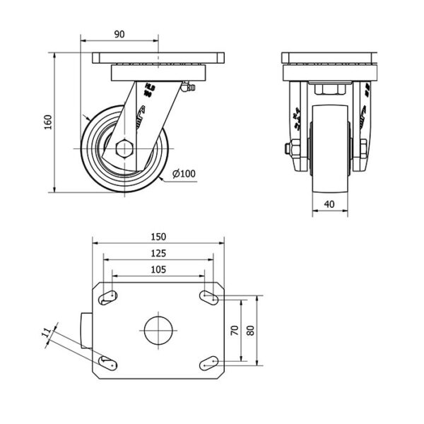 Rueda acero giratoria Alex diametro 100 mm. modelo 2-0516