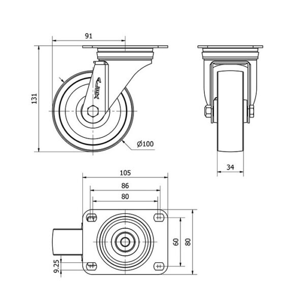 Rueda acero giratoria Alex diametro 100 mm. modelo 2-2507 EAN 8422202225074