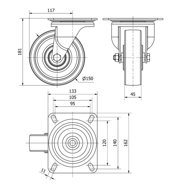 Rueda acero giratoria Alex diametro 100 mm. modelo 4-0106