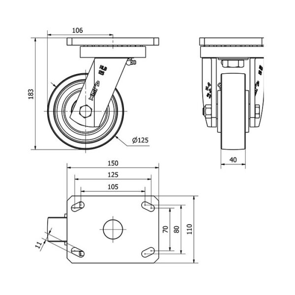 Rueda acero giratoria Alex diametro 125 mm. modelo 2-0518 EAN 8422202205182