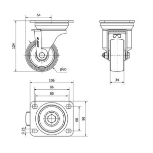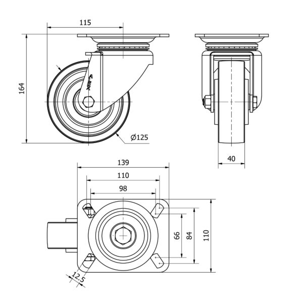 Rueda acero giratoria Alex diametro 125 mm. modelo 2-4978 EAN 8422202249780